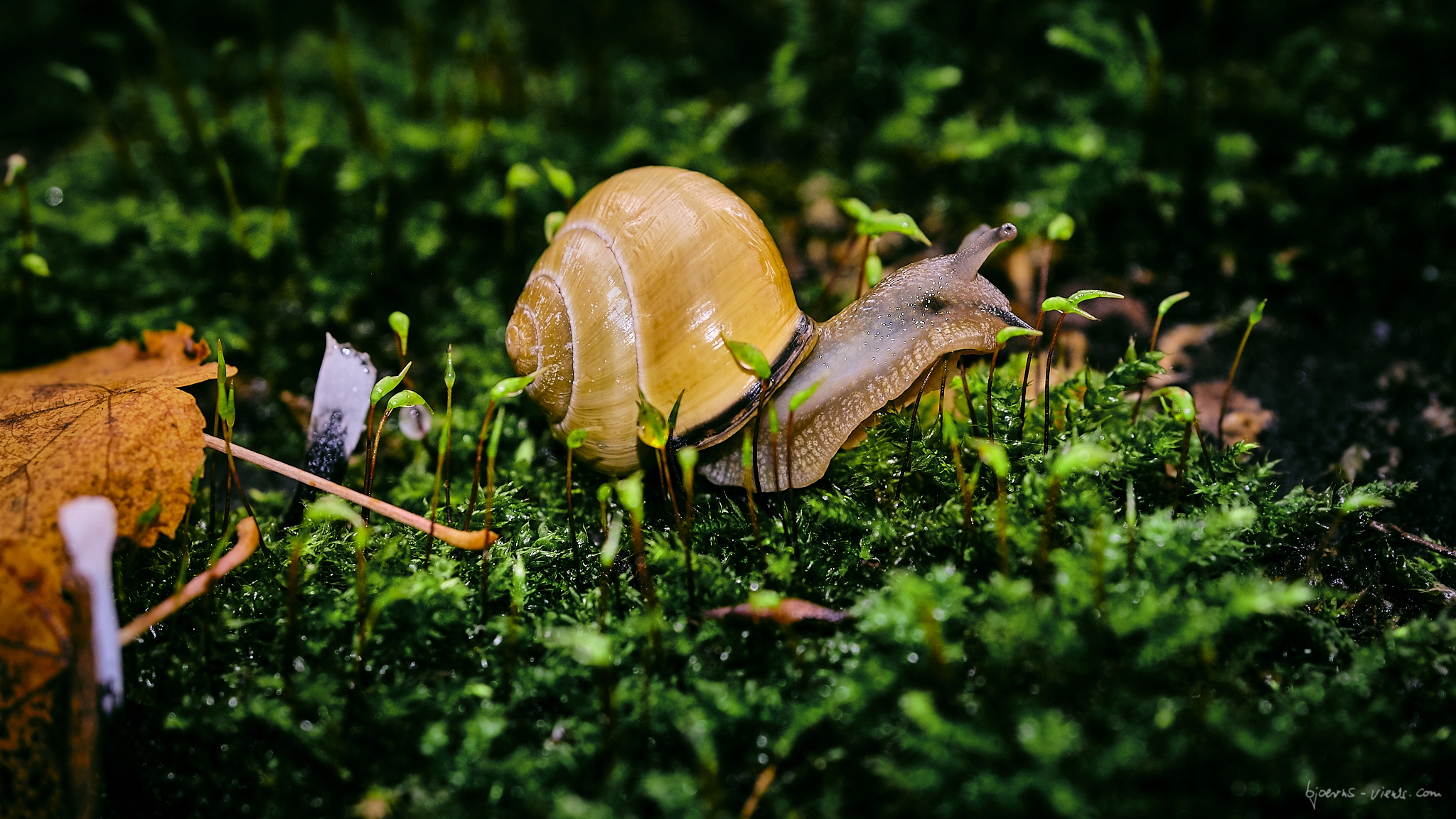 So richtig viele Motive habe ich nicht gefunden, aber ein paar kleine Schnecken, die im feuchten Moos unterwegs waren. Und das stellenweise viel zu schnell für mich und meine Kamera. 🙂 🙂 🙂