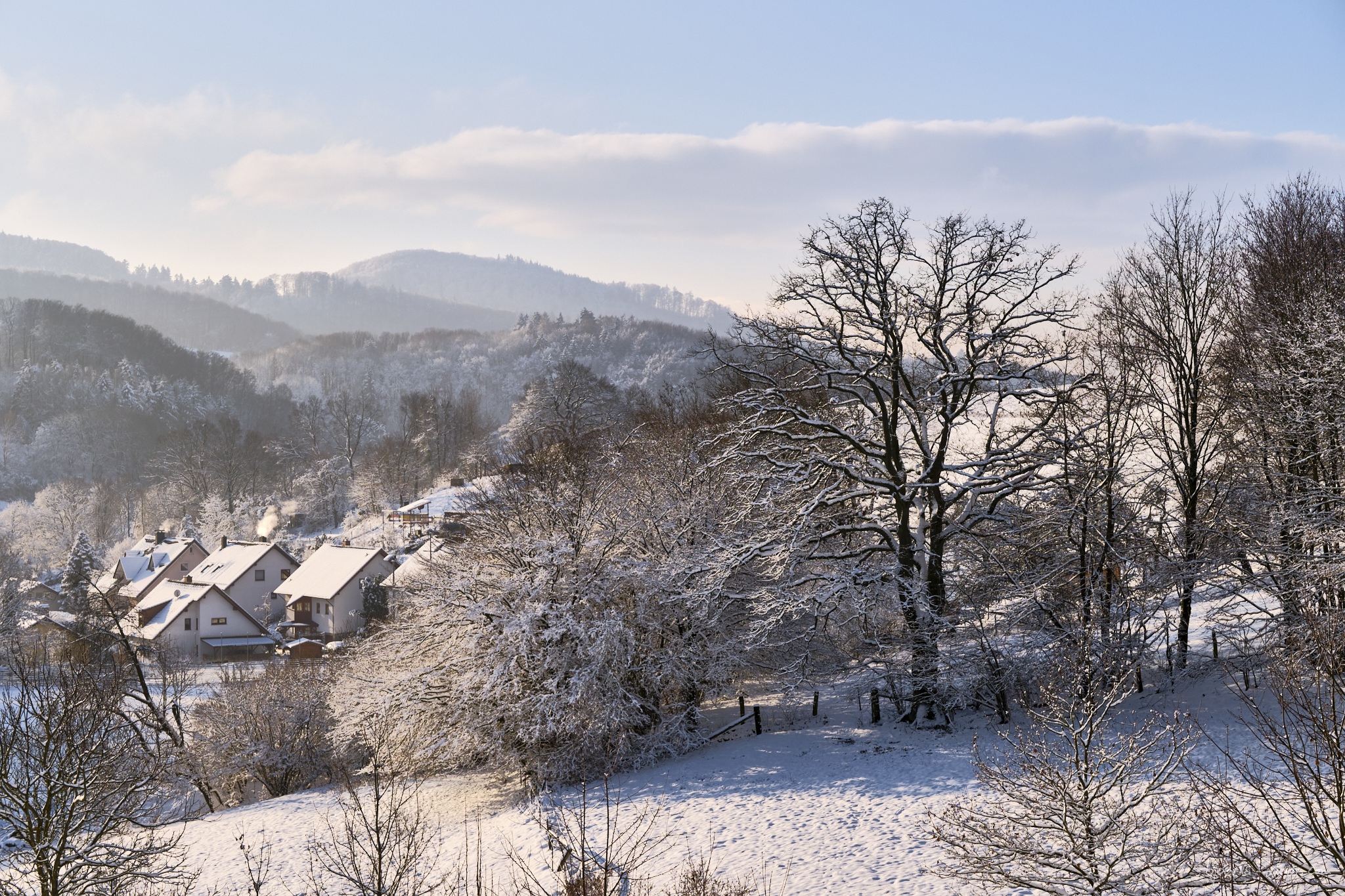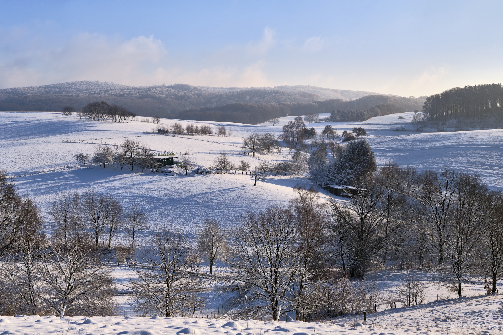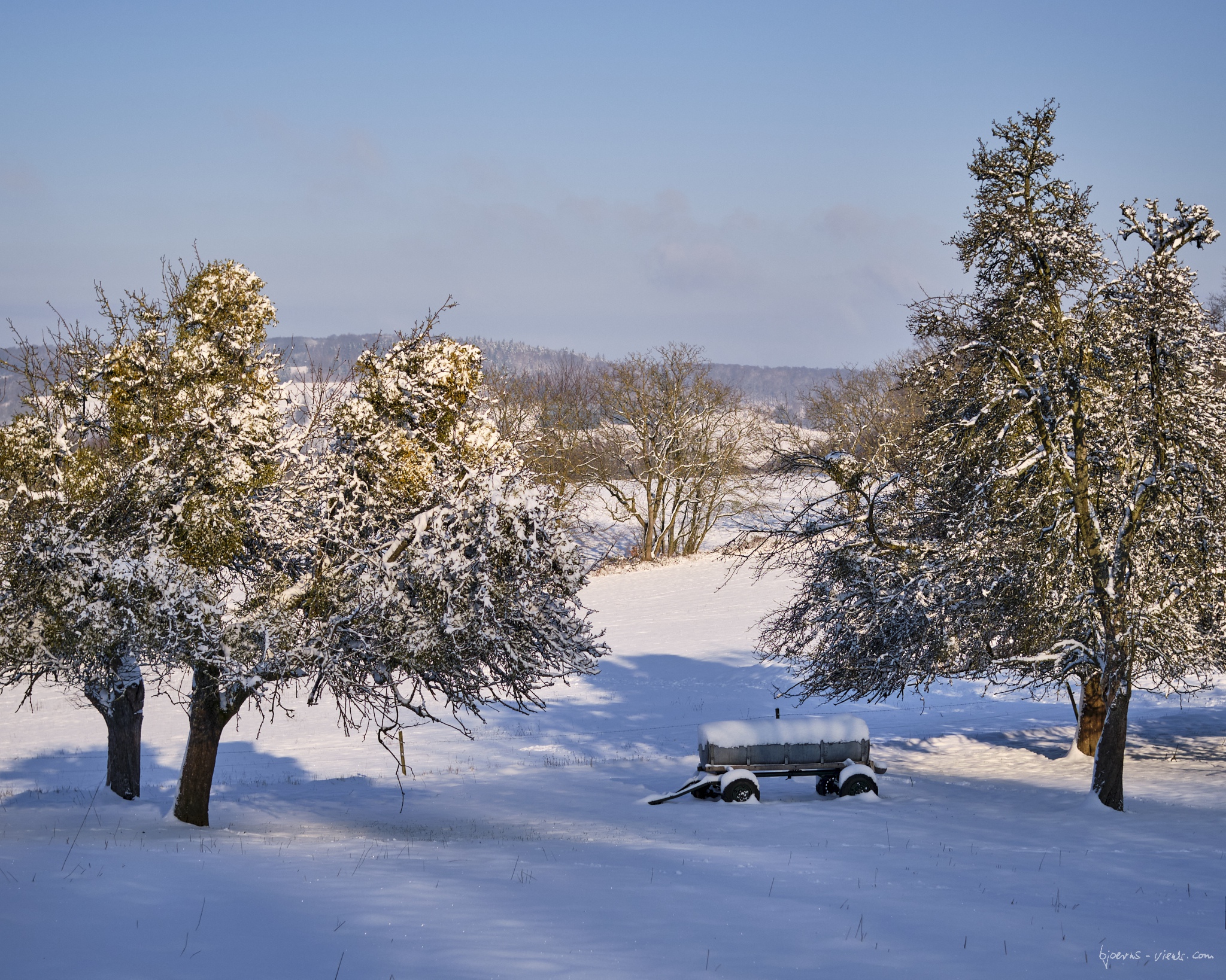 Und dann war ich eigentlich schon auf dem Heimweg, kam über eine Kuppe. Dort war der Blick so schön, dass ich bei der nächsten Gelegenheit umgedreht habe, weil ich noch ein bisschen durch den Schnee stapfen wollte. Auf meinem Weg hoch, sind dann noch diese Bilder entstanden. Damit kam ich dann wenigstens noch auf meine 10.000 Schritte. 🙂